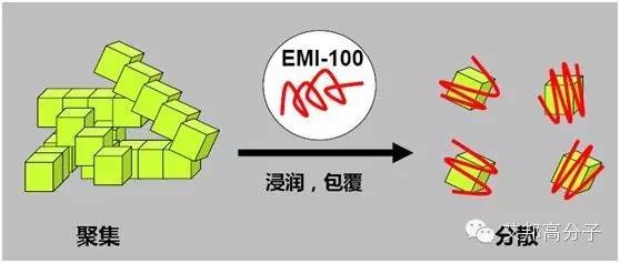 佳易容推出了一款色母載體:EMI-100 。EMI-100的分散機理為:EMI-100通過浸潤、包覆作用分布在色粉的表面,減小色粉微粒之間的作用力;從而避免色粉的分布不均缺陷。